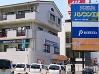 椿神社交差点より松山市内方向に500m。「パソコン工房」さんの看板の奥に見え始めます。 -