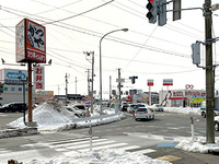 西大通りと新潟亀田内野線が交わる交差点、幹線道路のため、車通りも多いです。ここからも、看板が見えます。 -
