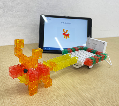 ブロックでトナカイを組み立てて、プログラミングで走らせてみよう!